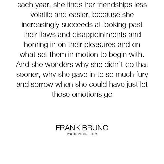 each year, she finds her friendships less volatile and easier, because she increasingly succeeds at looking past their flaws and disappointments and homing in on their pleasures and on what set them in motion to begin with. And she wonders why she didn’t do that sooner, why she gave in to so much fury and sorrow when she could have just let those emotions go
