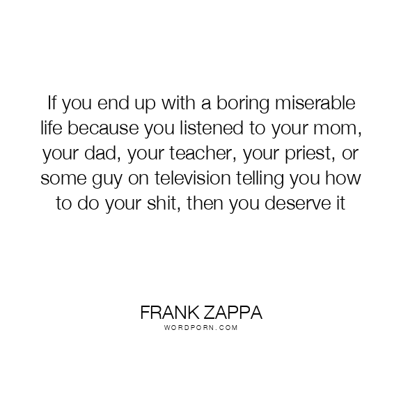 If you end up with a boring miserable life because you listened to your mom, your dad, your teacher, your priest, or some guy on television telling you how to do your shit, then you deserve it