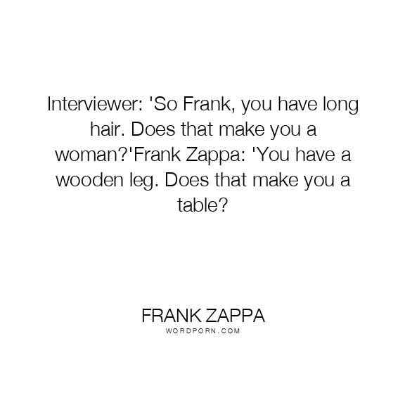 Interviewer: 'So Frank, you have long hair. Does that make you a woman?'Frank Zappa: 'You have a wooden leg. Does that make you a table?