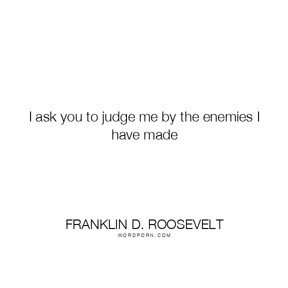 I ask you to judge me by the enemies I have made