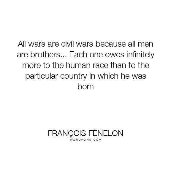 All wars are civil wars because all men are brothers... Each one owes infinitely more to the human race than to the particular country in which he was born