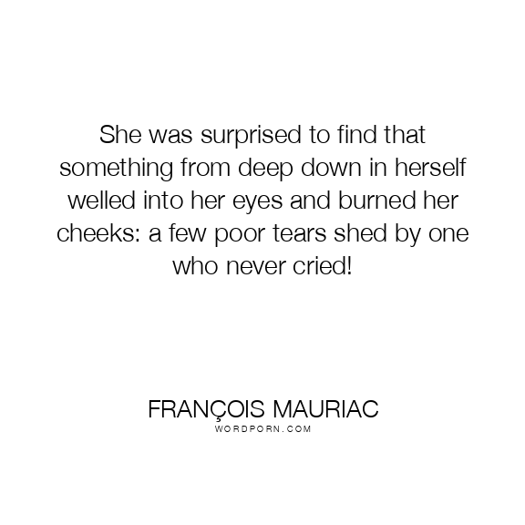 She was surprised to find that something from deep down in herself welled into her eyes and burned her cheeks: a few poor tears shed by one who never cried!
