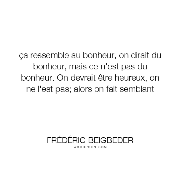 ça ressemble au bonheur, on dirait du bonheur, mais ce n'est pas du bonheur. On devrait être heureux, on ne l'est pas; alors on fait semblant