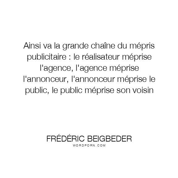 Ainsi va la grande chaîne du mépris publicitaire : le réalisateur méprise l'agence, l'agence méprise l'annonceur, l'annonceur méprise le public, le public méprise son voisin