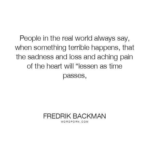 People in the real world always say, when something terrible happens, that the sadness and loss and aching pain of the heart will “lessen as time passes,