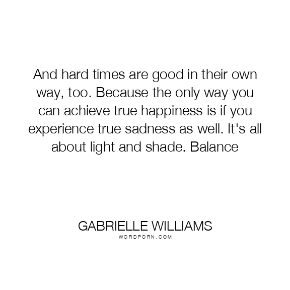 And hard times are good in their own way, too. Because the only way you can achieve true happiness is if you experience true sadness as well. It's all about light and shade. Balance