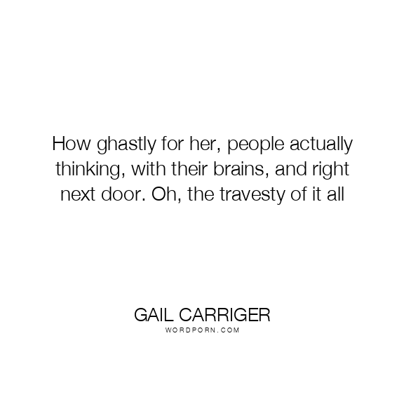 How ghastly for her, people actually thinking, with their brains, and right next door. Oh, the travesty of it all