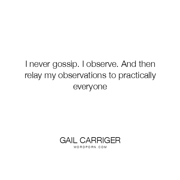 I never gossip. I observe. And then relay my observations to practically everyone