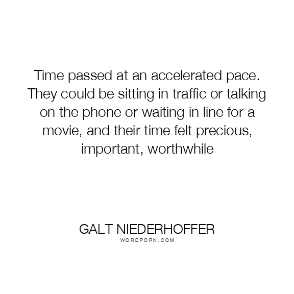 Time passed at an accelerated pace. They could be sitting in traffic or talking on the phone or waiting in line for a movie, and their time felt precious, important, worthwhile