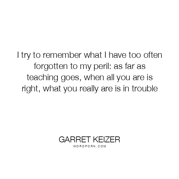 I try to remember what I have too often forgotten to my peril: as far as teaching goes, when all you are is right, what you really are is in trouble