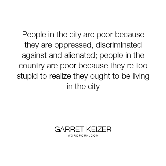 People in the city are poor because they are oppressed, discriminated against and alienated; people in the country are poor because they're too stupid to realize they ought to be living in the city