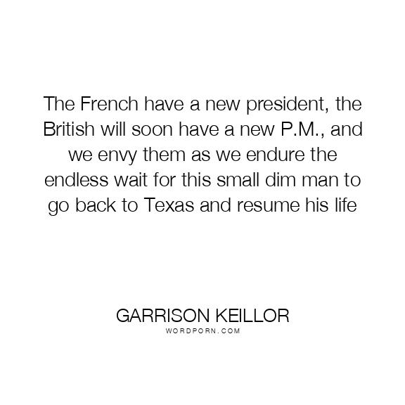 The French have a new president, the British will soon have a new P.M., and we envy them as we endure the endless wait for this small dim man to go back to Texas and resume his life