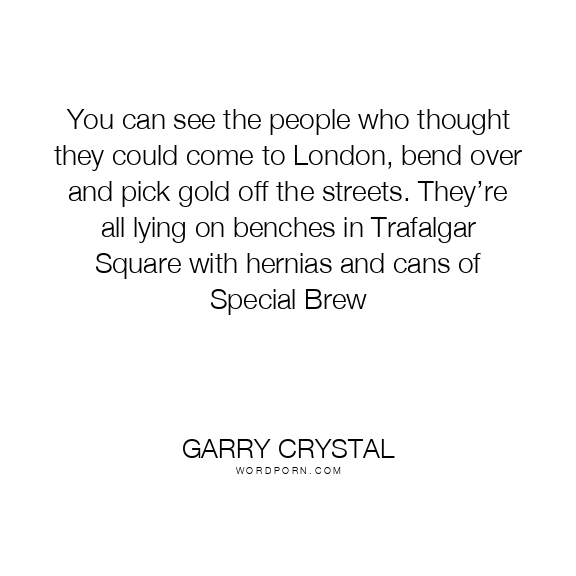 You can see the people who thought they could come to London, bend over and pick gold off the streets. They’re all lying on benches in Trafalgar Square with hernias and cans of Special Brew