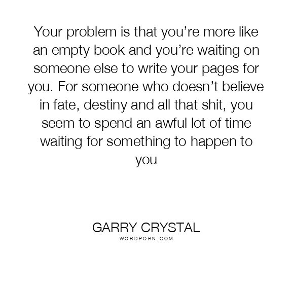 Your problem is that you’re more like an empty book and you’re waiting on someone else to write your pages for you. For someone who doesn’t believe in fate, destiny and all that shit, you seem to spend an awful lot of time waiting for something to happen to you