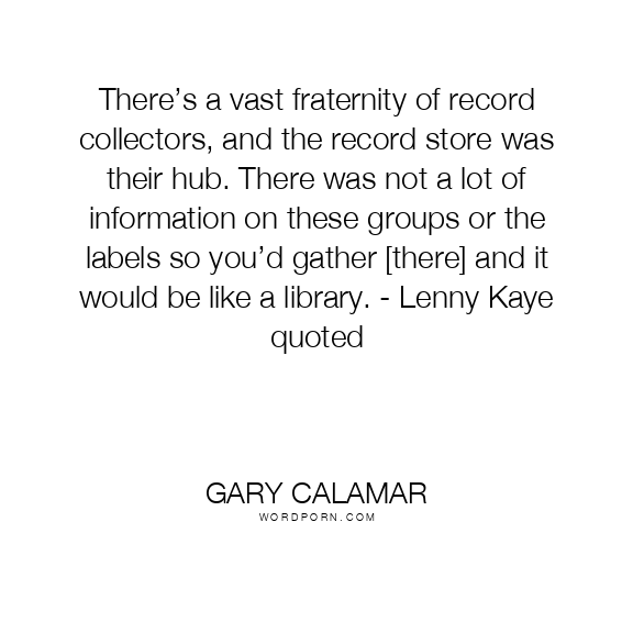 There’s a vast fraternity of record collectors, and the record store was their hub. There was not a lot of information on these groups or the labels so you’d gather [there] and it would be like a library. - Lenny Kaye quoted