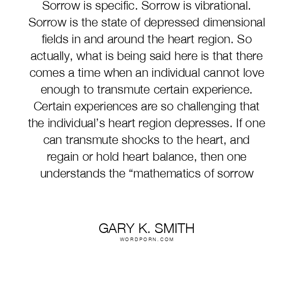 Sorrow is specific. Sorrow is vibrational. Sorrow is the state of depressed dimensional fields in and around the heart region. So actually, what is being said here is that there comes a time when an individual cannot love enough to transmute certain experience. Certain experiences are so challenging that the individual’s heart region depresses. If one can transmute shocks to the heart, and regain or hold heart balance, then one understands the “mathematics of sorrow