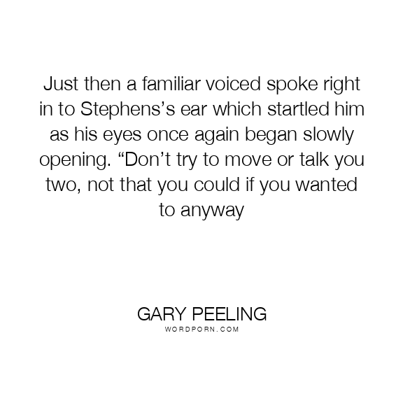 Just then a familiar voiced spoke right in to Stephens’s ear which startled him as his eyes once again began slowly opening. “Don’t try to move or talk you two, not that you could if you wanted to anyway