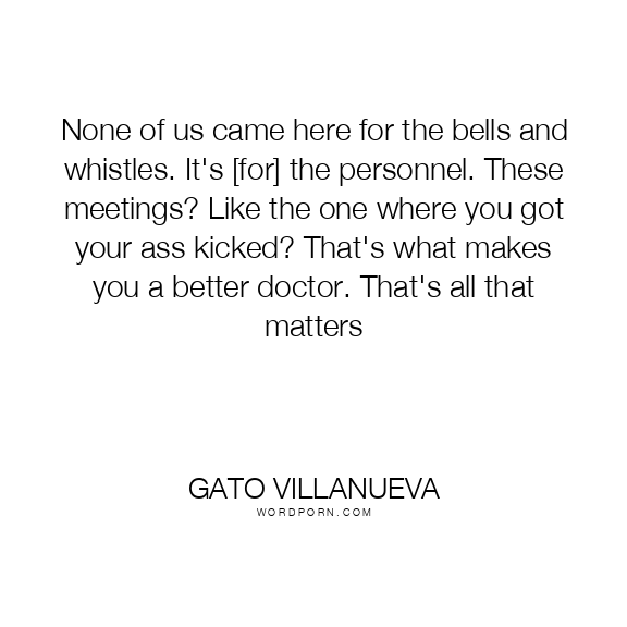 None of us came here for the bells and whistles. It's [for] the personnel. These meetings? Like the one where you got your ass kicked? That's what makes you a better doctor. That's all that matters