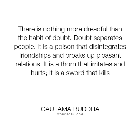There is nothing more dreadful than the habit of doubt. Doubt separates people. It is a poison that disintegrates friendships and breaks up pleasant relations. It is a thorn that irritates and hurts; it is a sword that kills