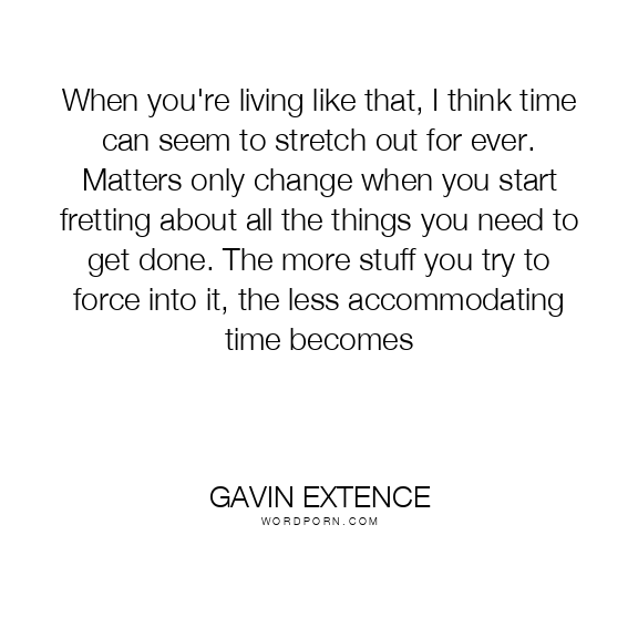 When you're living like that, I think time can seem to stretch out for ever. Matters only change when you start fretting about all the things you need to get done. The more stuff you try to force into it, the less accommodating time becomes
