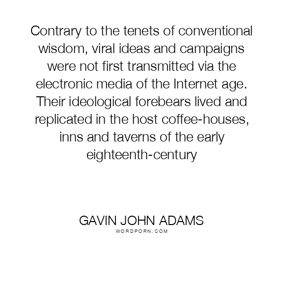 Contrary to the tenets of conventional wisdom, viral ideas and campaigns were not first transmitted via the electronic media of the Internet age. Their ideological forebears lived and replicated in the host coffee-houses, inns and taverns of the early eighteenth-century