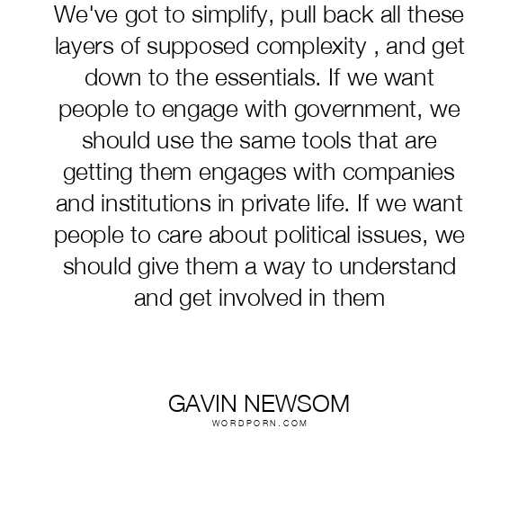 We've got to simplify, pull back all these layers of supposed complexity , and get down to the essentials. If we want people to engage with government, we should use the same tools that are getting them engages with companies and institutions in private life. If we want people to care about political issues, we should give them a way to understand and get involved in them