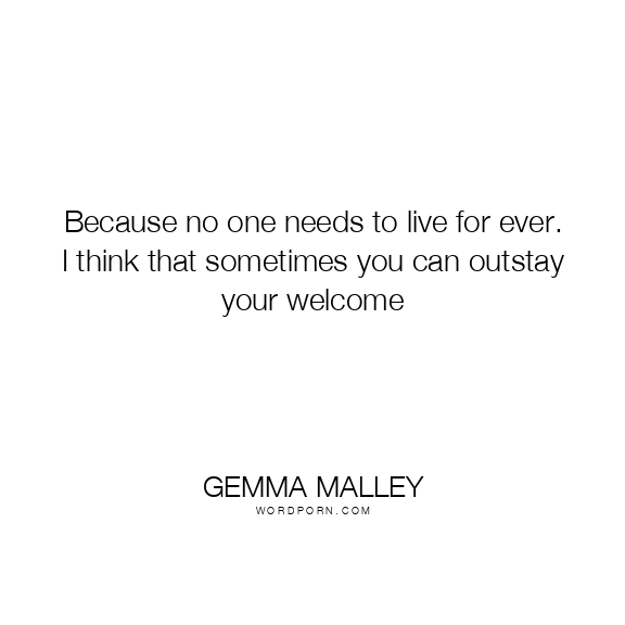 Because no one needs to live for ever. I think that sometimes you can outstay your welcome