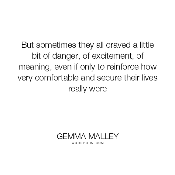 But sometimes they all craved a little bit of danger, of excitement, of meaning, even if only to reinforce how very comfortable and secure their lives really were