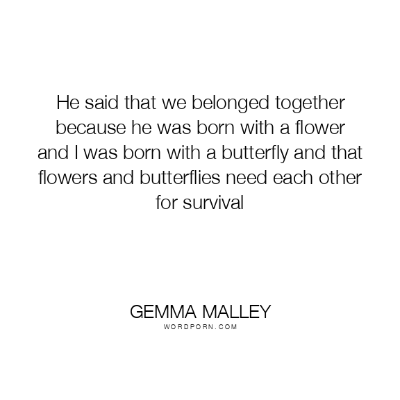 He said that we belonged together because he was born with a flower and I was born with a butterfly and that flowers and butterflies need each other for survival