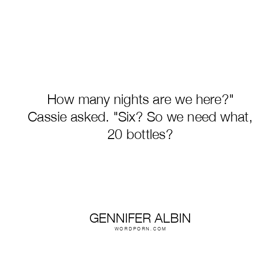Copy Image How many nights are we here?" Cassie asked. "Six? So we need what, 20 bottles? Moms Typewriter A A SAVE THIS IMAGE