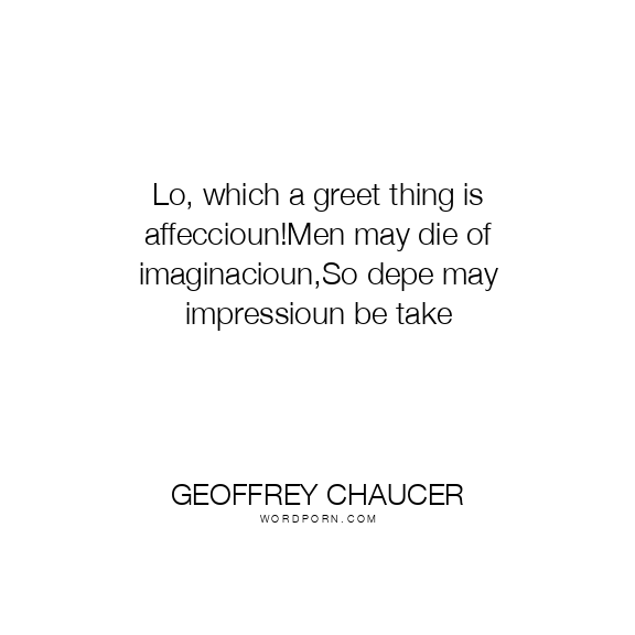 Geoffrey Chaucer quote. Lo, which a greet thing is affeccioun!Men may die of imaginacioun,So depe may impressioun be take