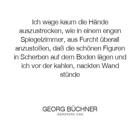 Ich wage kaum die Hände auszustrecken, wie in einem engen Spiegelzimmer, aus Furcht überall anzustoßen, daß die schönen Figuren in Scherben auf dem Boden lägen und ich vor der kahlen, nackten Wand stünde