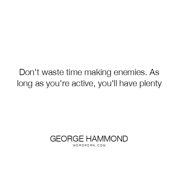 Don't waste time making enemies. As long as you're active, you'll have plenty