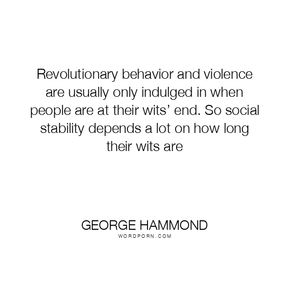 Revolutionary behavior and violence are usually only indulged in when people are at their wits’ end. So social stability depends a lot on how long their wits are