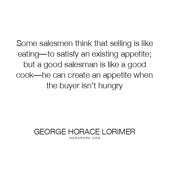 Some salesmen think that selling is like eating—to satisfy an existing appetite; but a good salesman is like a good cook—he can create an appetite when the buyer isn't hungry