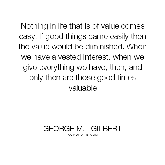 Nothing in life that is of value comes easy. If good things came easily then the value would be diminished. When we have a vested interest, when we give everything we have, then, and only then are those good times valuable