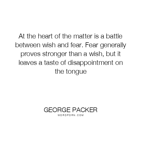 At the heart of the matter is a battle between wish and fear. Fear generally proves stronger than a wish, but it leaves a taste of disappointment on the tongue