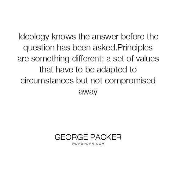 Ideology knows the answer before the question has been asked.Principles are something different: a set of values that have to be adapted to circumstances but not compromised away