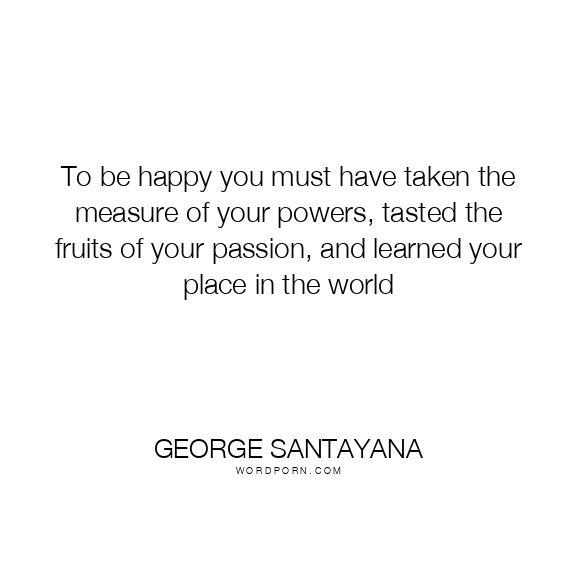 To be happy you must have taken the measure of your powers, tasted the fruits of your passion, and learned your place in the world