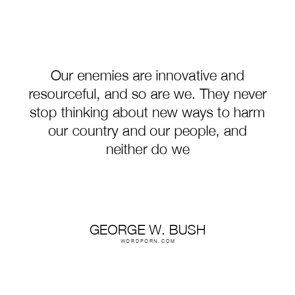 Our enemies are innovative and resourceful, and so are we. They never stop thinking about new ways to harm our country and our people, and neither do we