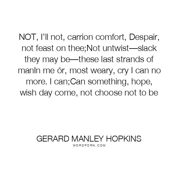 NOT, I’ll not, carrion comfort, Despair, not feast on thee;Not untwist—slack they may be—these last strands of manIn me ór, most weary, cry I can no more. I can;Can something, hope, wish day come, not choose not to be