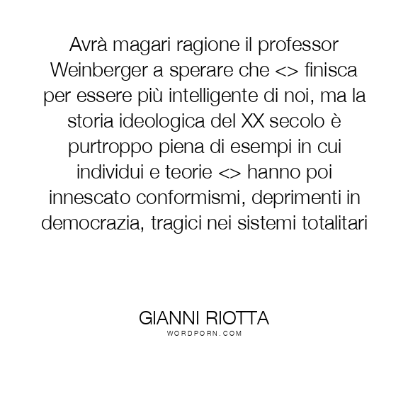 Avrà magari ragione il professor Weinberger a sperare che <> finisca per essere più intelligente di noi, ma la storia ideologica del XX secolo è purtroppo piena di esempi in cui individui e teorie <> hanno poi innescato conformismi, deprimenti in democrazia, tragici nei sistemi totalitari