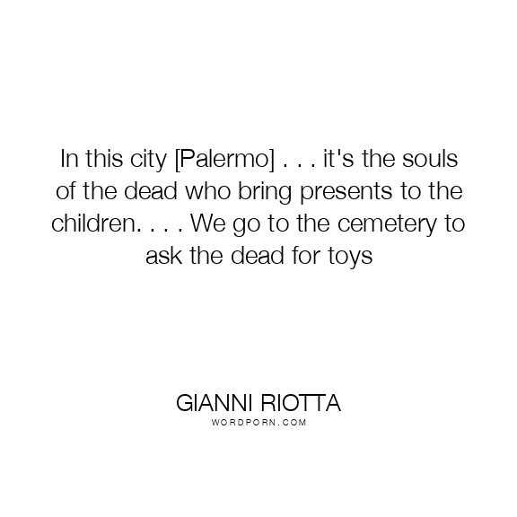 In this city [Palermo] . . . it's the souls of the dead who bring presents to the children. . . . We go to the cemetery to ask the dead for toys