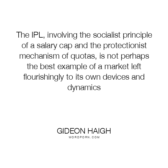 The IPL, involving the socialist principle of a salary cap and the protectionist mechanism of quotas, is not perhaps the best example of a market left flourishingly to its own devices and dynamics