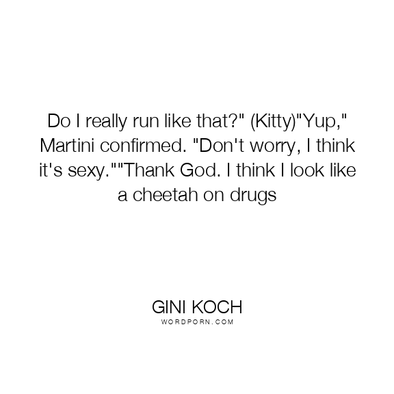 Do I really run like that?" (Kitty)"Yup," Martini confirmed. "Don't worry, I think it's sexy.""Thank God. I think I look like a cheetah on drugs