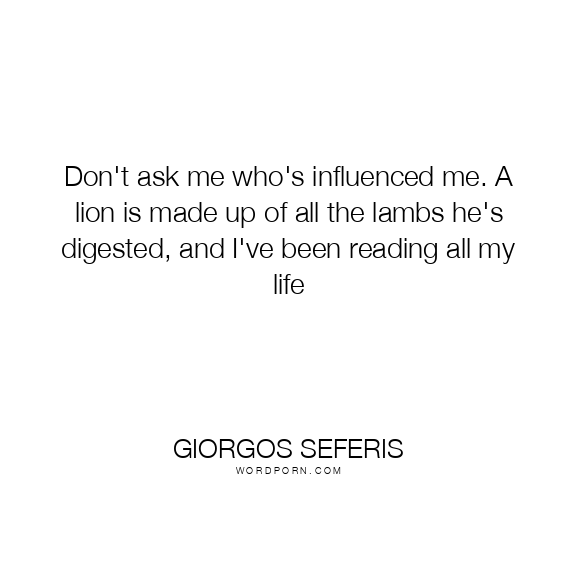 Copy Image Don't ask me who's influenced me. A lion is made up of all the lambs he's digested, and I've been reading all my life Moms Typewriter A A SAVE THIS IMAGE