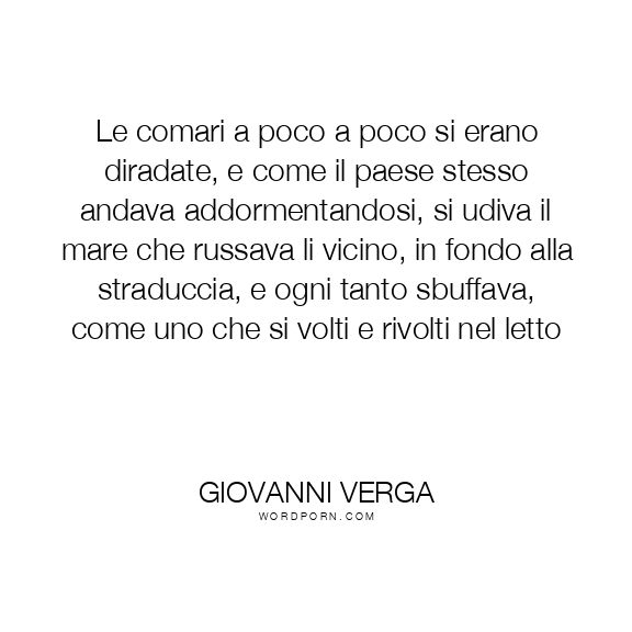 Le comari a poco a poco si erano diradate, e come il paese stesso andava addormentandosi, si udiva il mare che russava li vicino, in fondo alla straduccia, e ogni tanto sbuffava, come uno che si volti e rivolti nel letto