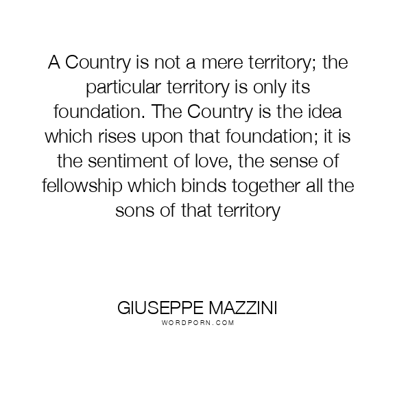 A Country is not a mere territory; the particular territory is only its foundation. The Country is the idea which rises upon that foundation; it is the sentiment of love, the sense of fellowship which binds together all the sons of that territory