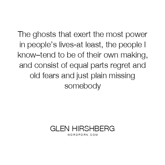 The ghosts that exert the most power in people’s lives-at least, the people I know–tend to be of their own making, and consist of equal parts regret and old fears and just plain missing somebody