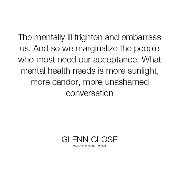 The mentally ill frighten and embarrass us. And so we marginalize the people who most need our acceptance. What mental health needs is more sunlight, more candor, more unashamed conversation